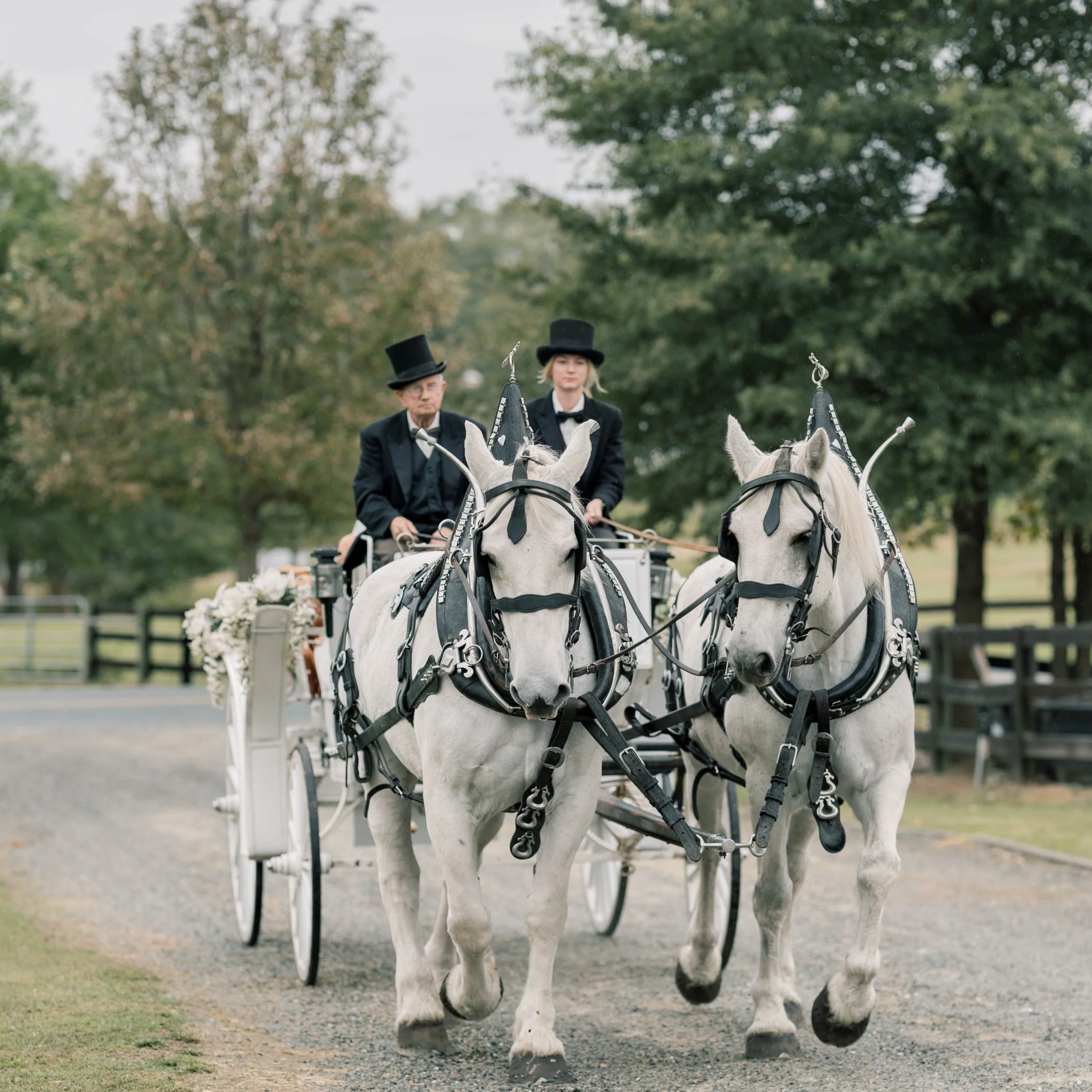 Gold Leaf Carriage is owned and operated by Johnny Smith and Elizabeth Johnson and has been in business since 1986. We provide services for various events all over the East Coast. Gold Leaf Carriage is fully licensed and insured. Our services can be customized to fit the needs of any event, big or small, and all reasonable requests will be honored. We take great pride in the health and well-being of our horses, ensuring that they are in good condition, healthy, and well-mannered.