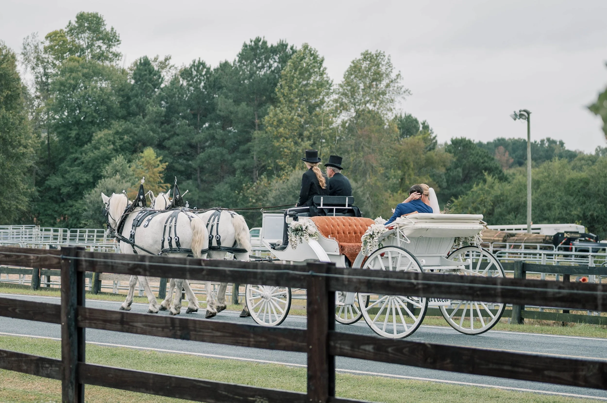 We offer carriage rides for a variety of different events using our vis-à-vis carriage and your choice of 2 horses. These carriage rides add a memorable and elegant touch to your event.